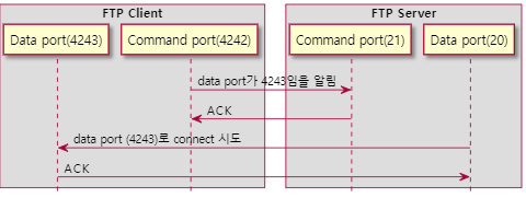 active mode FTP를 사용하면 FTP 클라이언트가 FTP 서버의 포트에 연결합니다.