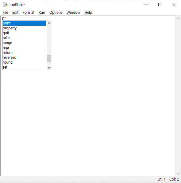Ctrl + Q : 모든 창을 닫고 IDLE를 종료합니다 (저장되지 않은 경우 저장 요청)