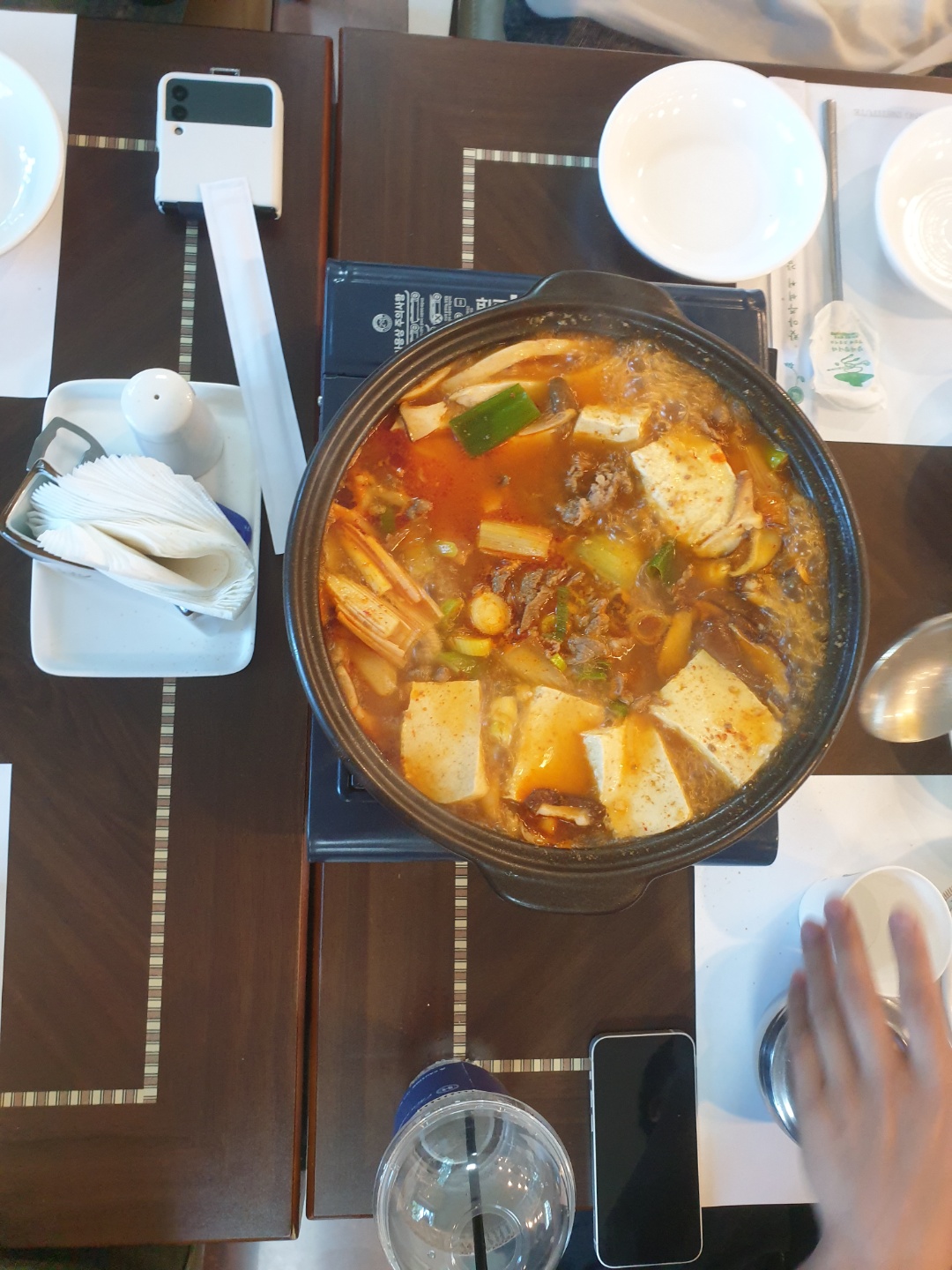 메뉴는 두부버섯전골이였고, 네명씩 테이블별로 앉아서 먹었습니다.