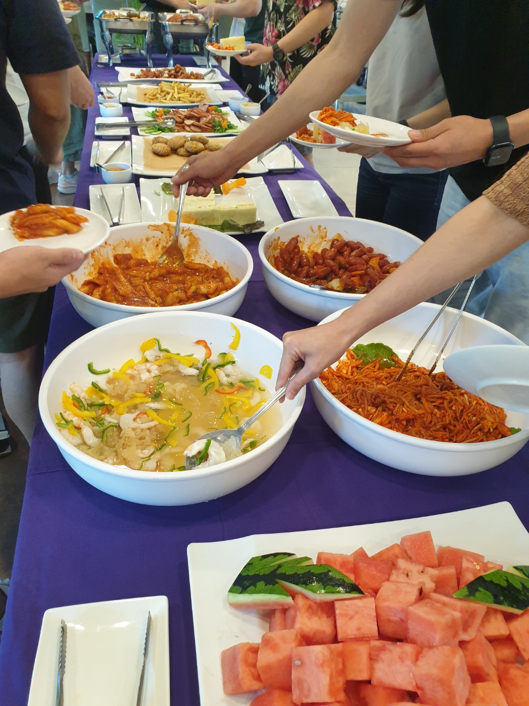 저녁은 뷔페식으로 나왔고, 각 테이블별로 조개탕이 나왔습니다.
