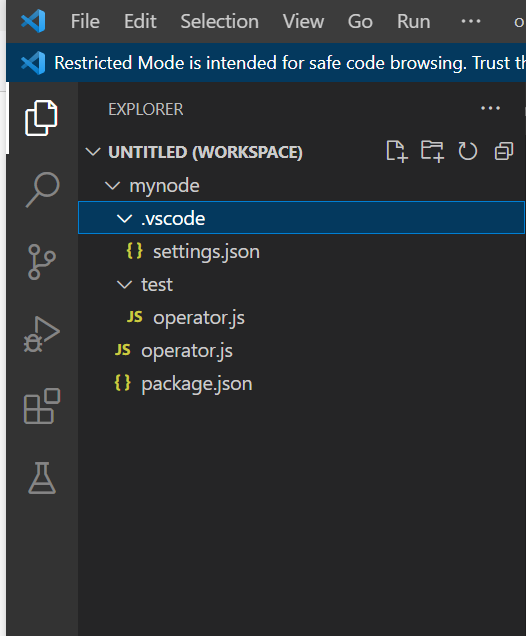 test폴더를 만들고, 그 아래에 operator.js라는 파일을 만들어 줍니다.