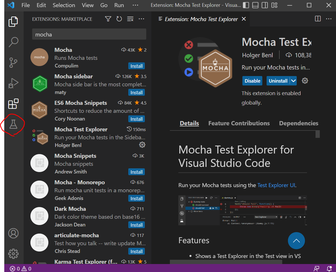 4. vscode - mocha test explorer 플러그인설치