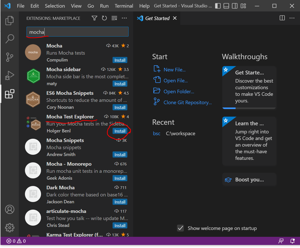 Getting started with mocha in vs code && node js, testing nodejs javascript mocha in visual studio code, getting started