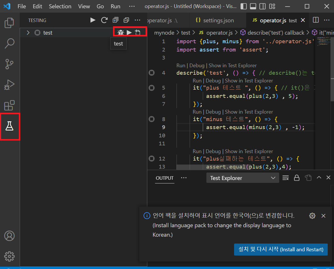 4. vs code - mocha test explorer 플러그인설치