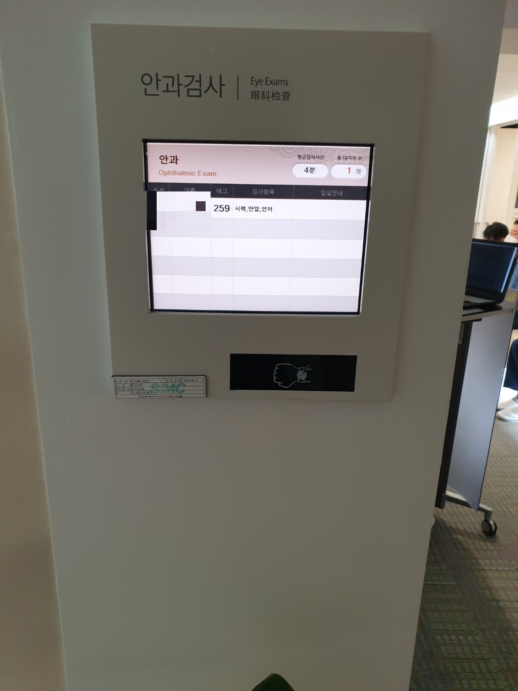 태블릿으로 기본정보를 입력하면 잠깐 쉴수있는데, 시설이 깨끗합니다.