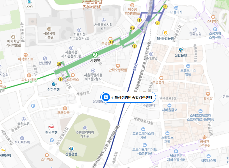 I went to the Kangbuk Samsung Hospital Comprehensive Checkup Center near City Hall Station for a health checkup. The address is Samsung Main Building, B1, 67 Sejong-daero, Jung-gu, Seoul. Get off at E