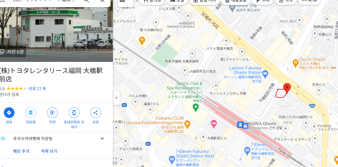 오하시역까지 가는 방법은 텐진역 - 니시테쓰 후쿠오카 노선 철도를 타면 됩니다.