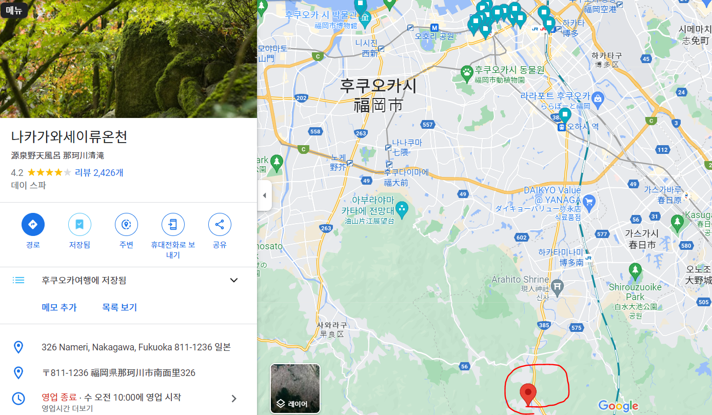세이류온천은 후쿠오카 아래에 위치한 곳으로, 저희 숙소하고 한참 먼곳에 존재하였습니다.