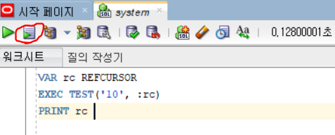 [Oracle] SQL Developer Printing a procedure cursor (CURSOR) (REFCURSOR), receiving results from a procedure, how to print a procedure cursor To receive a result value returned through the cursor of a