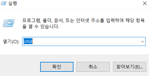 2) cmd를 입력하여 실행해줍니다