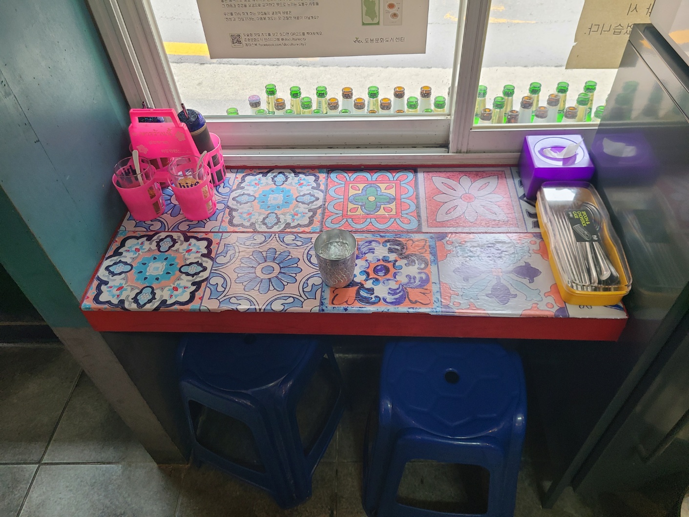 창가쪽에 앉아서 먹을 수 있는곳이 두자리 있습니다.