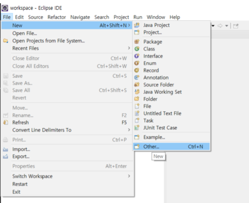 - 이클립스를 켠 상태에서 project explorer에서 우측버튼을 누른 후,