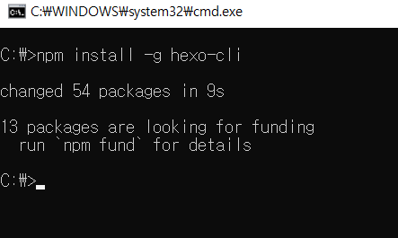 nodejs가 설치가 되면 이제 hexo를 설치할 수 있습니다.