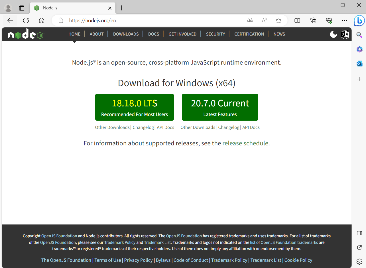 nodejs installationBefore starting hexo, you need to install nodejs.If you go to https://nodejs.org/, you will see a direct download link as shown below.Personally, I prefer to use the LTS version ra