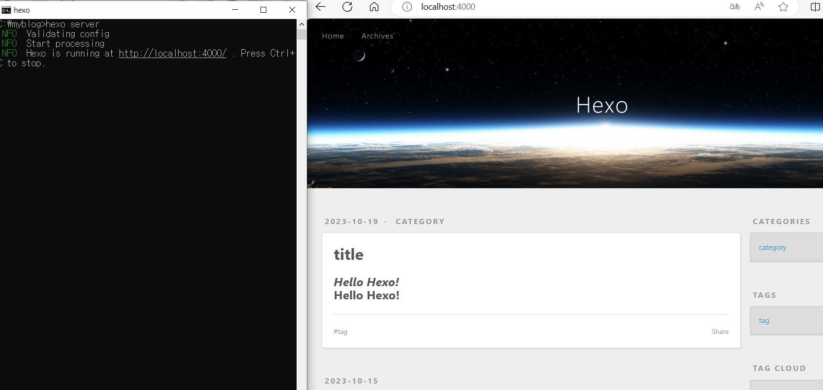 | 개인 블로그 만들기를 위한 여정3 - hexo 글쓰기, 페이지 만들기, 미리보기 (0) | 2023.11.02 |