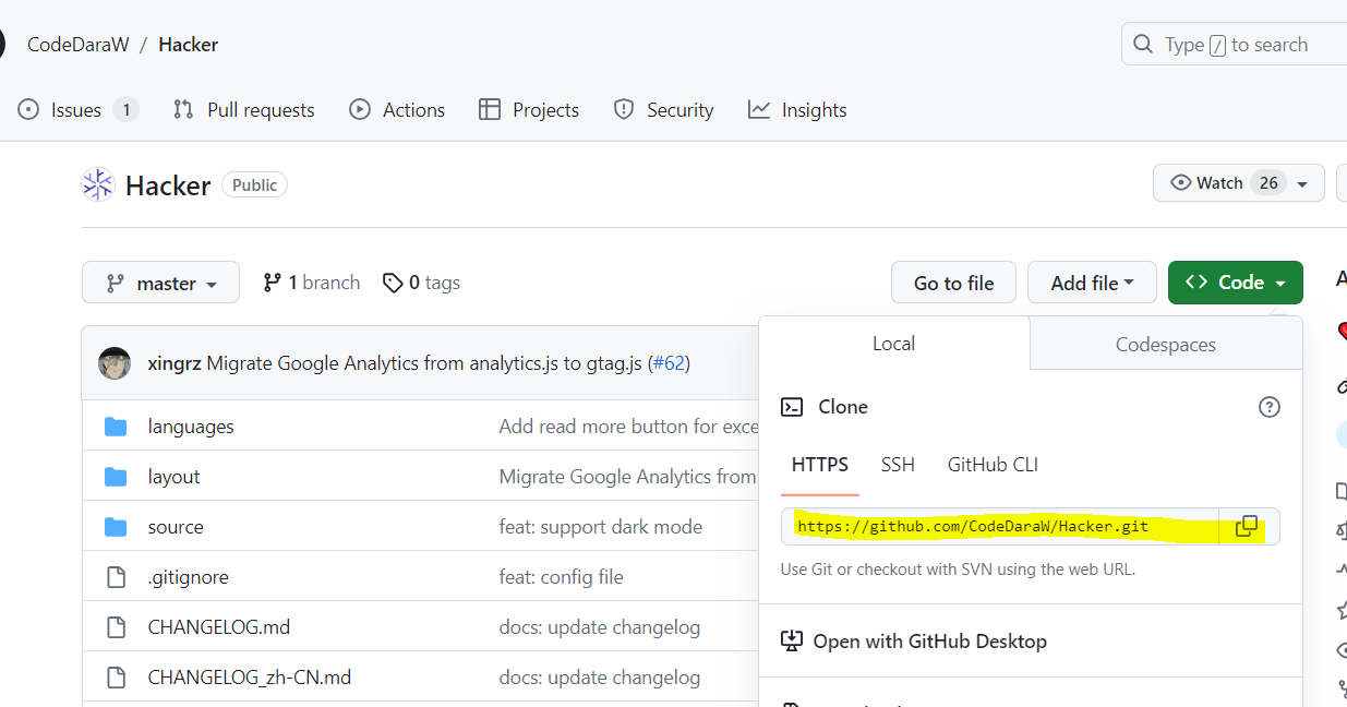 - 먼저, 사용하려는 hexo theme 의 github을 가서 주소를 복사합니다.