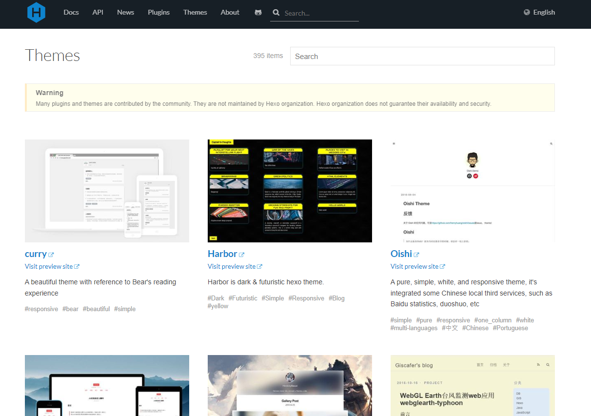 또한, theme 찾는것도 hexo 기본 사이트에서 카테고라이징 되어 있지 않아 탐색도 힘든거 같습니다.