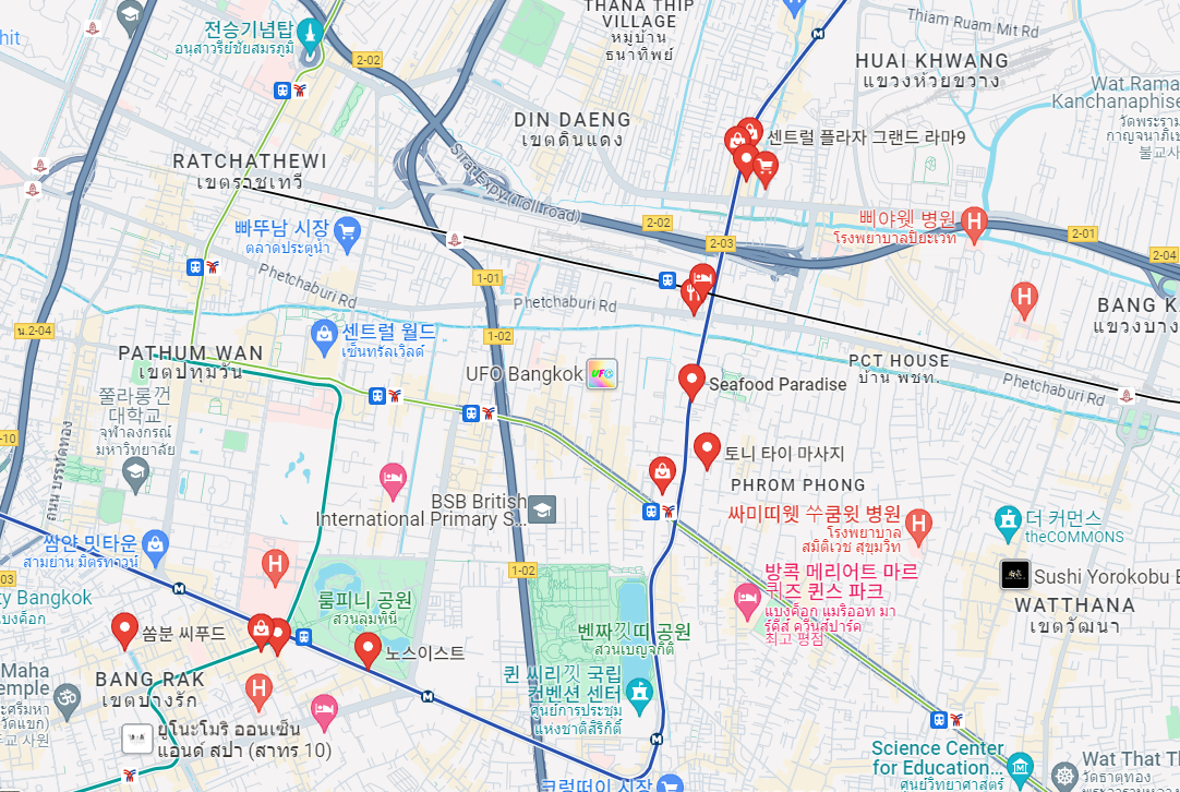 두 개 호선 각각으로 방콕의 명소들을 갈 수 있는 위치이며,