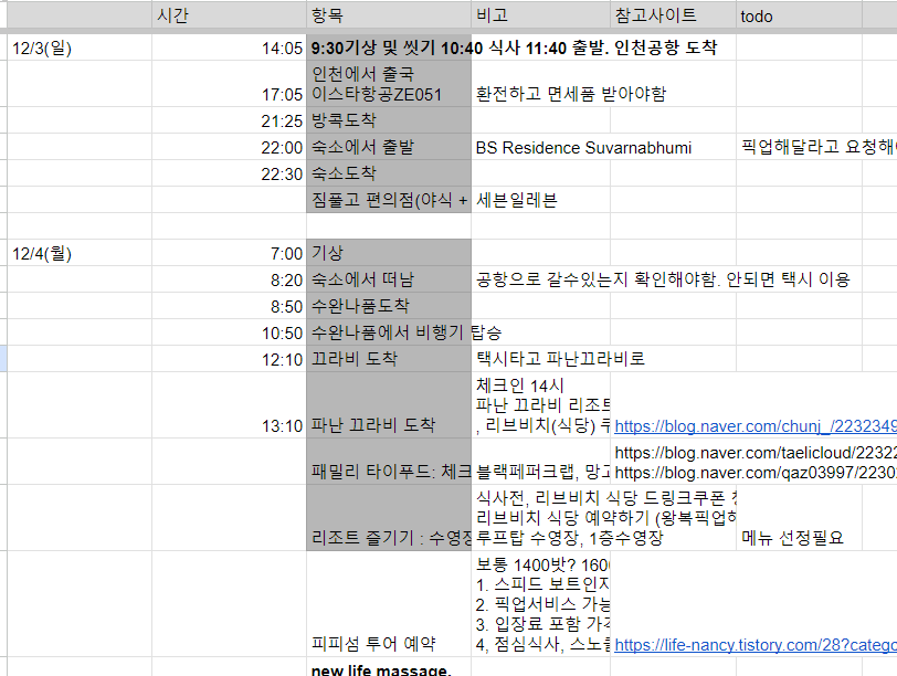 | 호텔예약-12/6~8(방콕) | 마지막 돌아가기 전 숙소 예약 필요. |