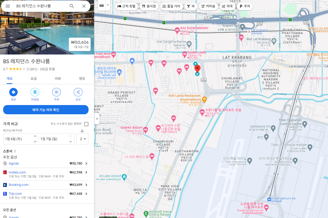 BS Residence는 아래와 같이 공항과 가까워서 10분 정도 걸리면 도착합니다.