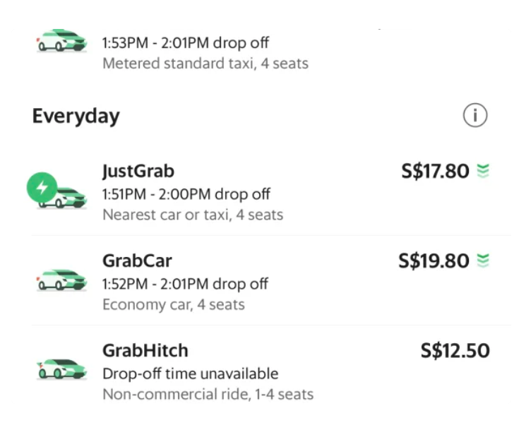 · Grab Hitch : 다른 승객과 합승하는 차량