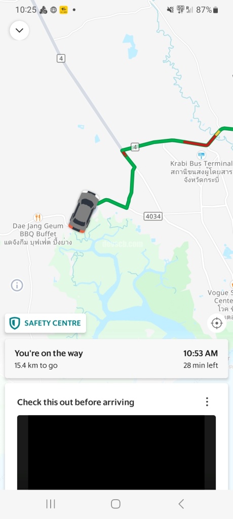 1시간 20분만에 끄라비 공항도착하고, 공항에서 택시타고 약 40분 정도 걸리게 되어 이동 시간을 약 1/10 을 줄입니다.
