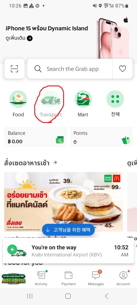 Grab 앱을 사용하기 위해서는 태국에 방문하기 전, 미리 설치하고 회원가입을 해야하며, 카드등록까지 해두어야 합니다.