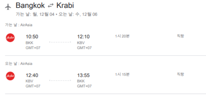 당시 비행기 예매시 방콕행은 밤 도착만 있었고, 끄라비는 직항이 없었습니다.