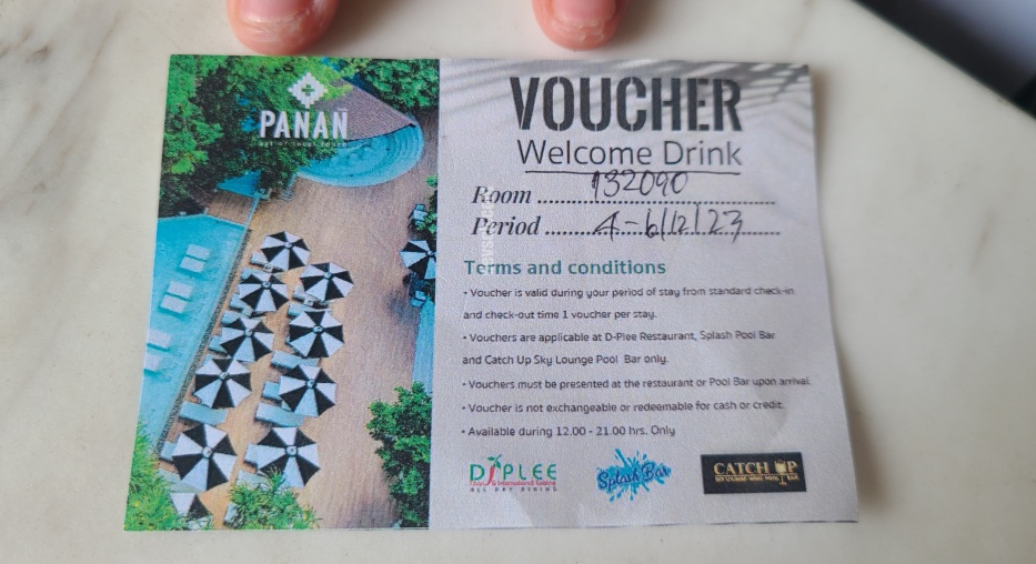 체크인을 마치면, 무료 음료쿠폰을 줍니다.