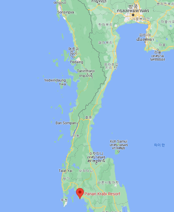 푸켓과 비슷한 위도로, 푸켓 우측에 위치합니다.