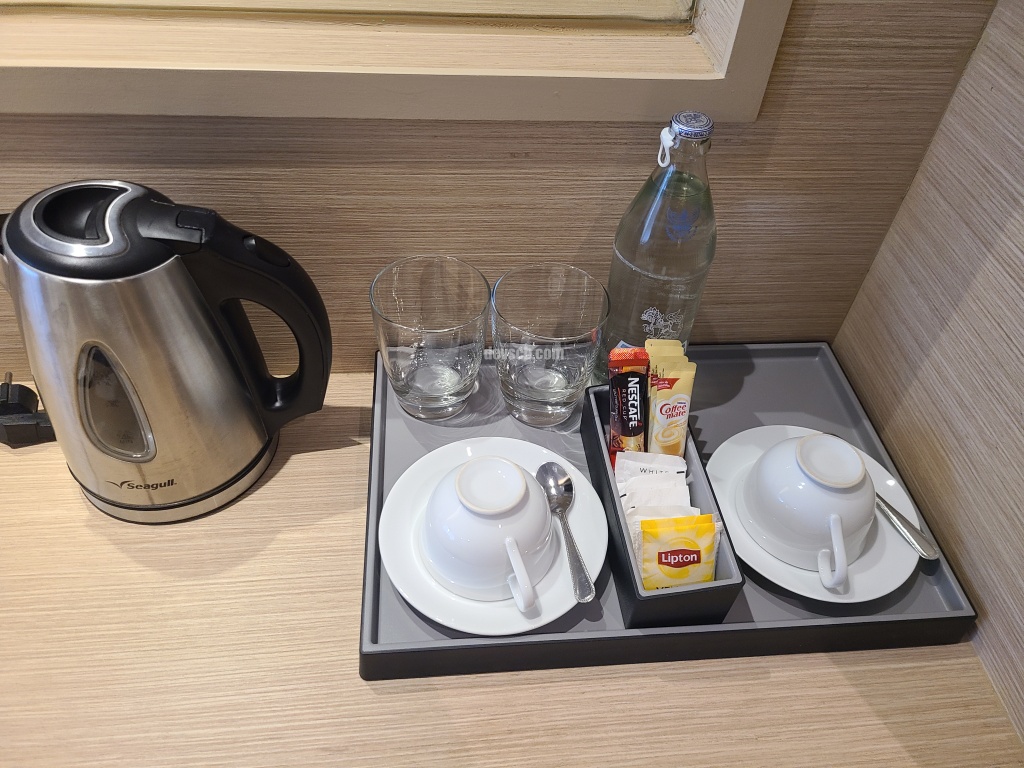 객실에는 물 두병과커피믹스, 컵 등이 있습니다.