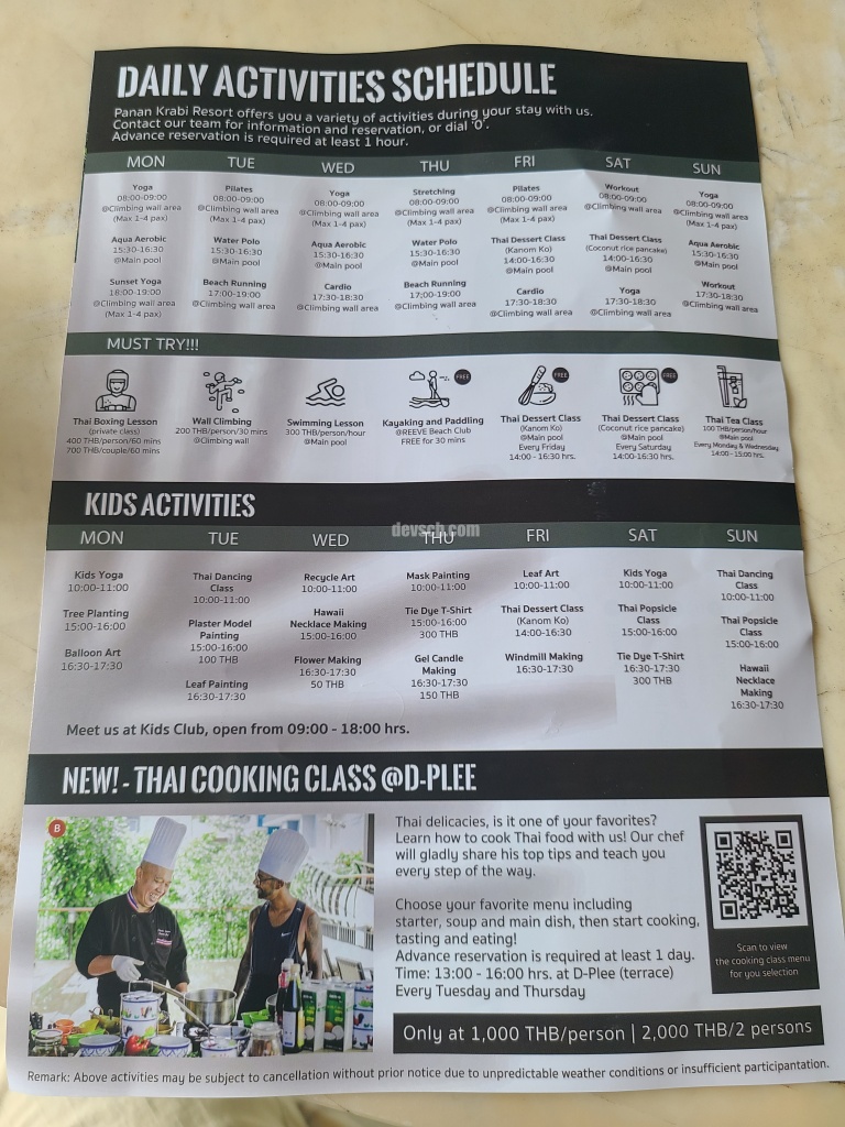 끄라비 리조트에서 즐길 수 있는 activity도 추가적으로 제공하는데요,