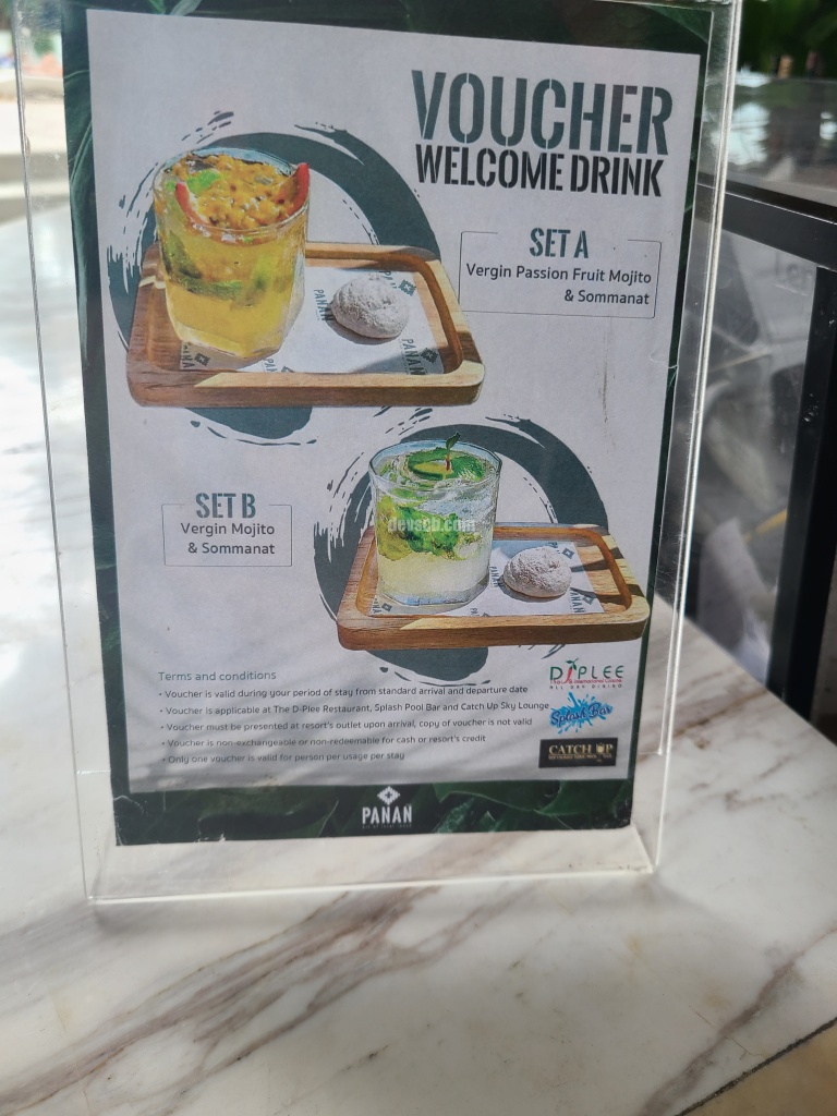 지도를 보고 C) Catch Up Sky Lounge로 따라 가면, 웰컴드링크를 골라 마실수 있습니다.
