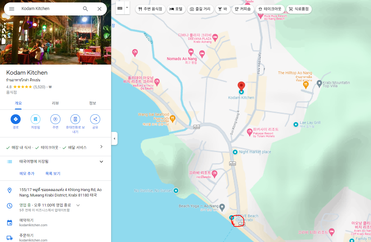 이곳은 프라낭 비치를 갔다와서 갔었던지라, 아래 지도에서 빨간색으로 표시된 곳에서 부터 걸어갔습니다.