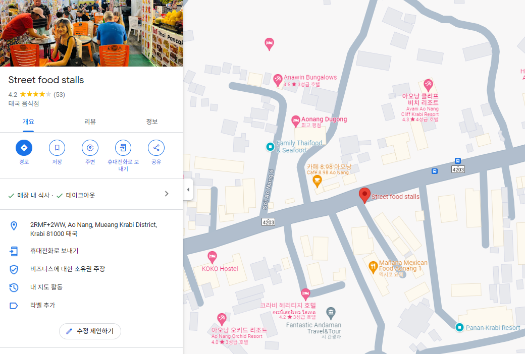 숙소(빠난 끄라비 리조트)하고 가깝고 가볍게 먹을 수 있는 곳이여서 들른 곳입니다.