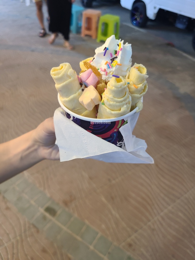 roll ice cream 파는 곳이 몇군데 보이지만, 찾으려면 잘 안보이는 거 같은 정도로 있습니다.
