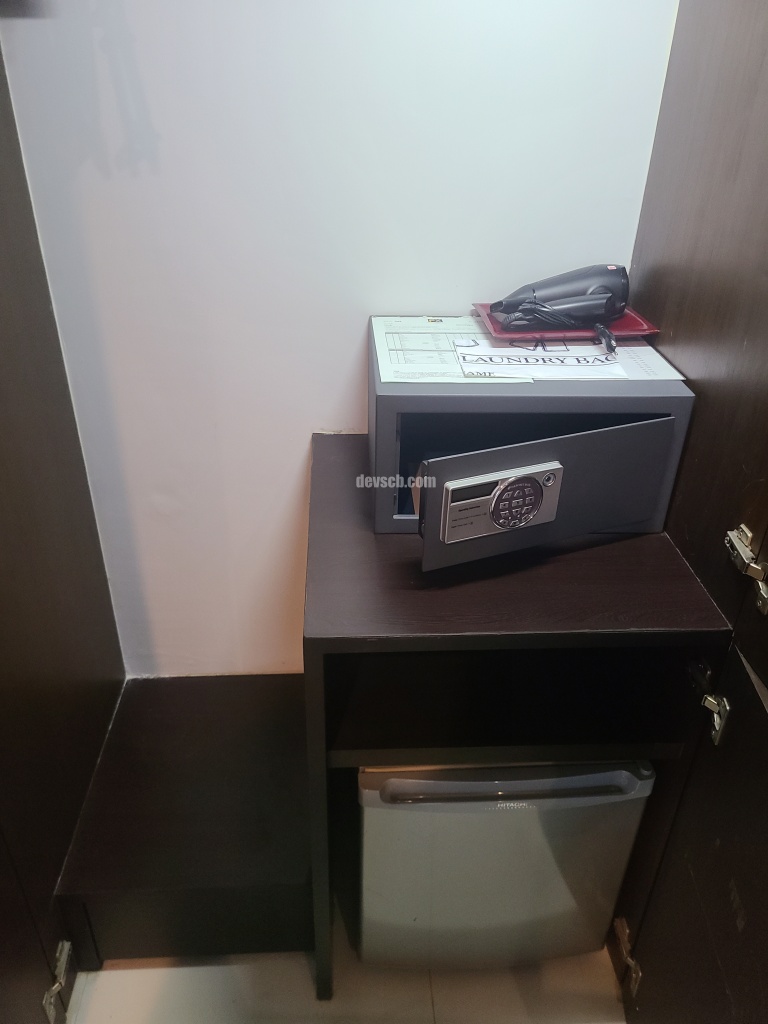 옷장에 드라이기, 금고, 미니냉장고가 잘 갖춰져있습니다.