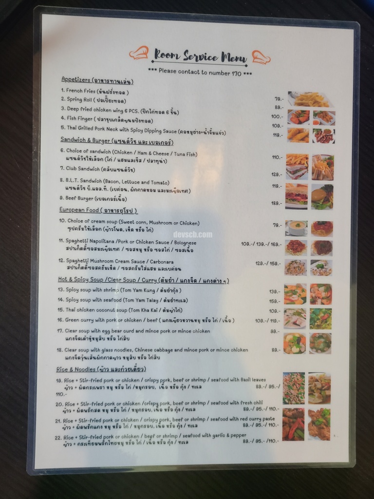 옆에는 룸 서비스를 받을 수 있는 음식들이 있는데, 다소 비싼 가격입니다.