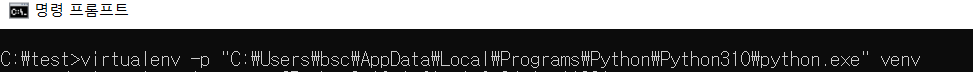 아래 명령어를 통해 virtualenv를 설치해줍니다.python -m pip install virtualenv - 가상환경 생성