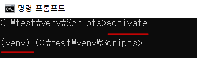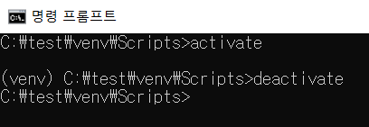 커맨드창 좌측에 가상환경 이름이 뜨는 모습을 확인할 수 있습니다.