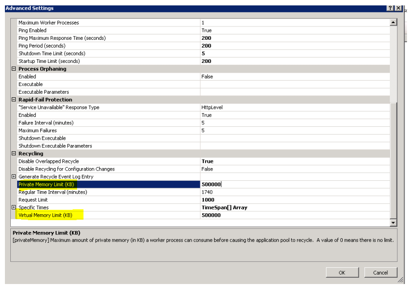 IIS recycle - memory제한 설정에 대한 설명