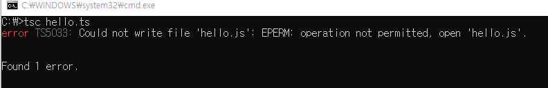 error TS5033: Could not write file 'hello.js': EPERM: operation not permitted, open 'hello.js'.