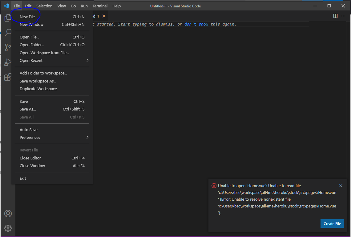 상단 메뉴바 File > New File을 선택하여 파일을 생성해줍시다.