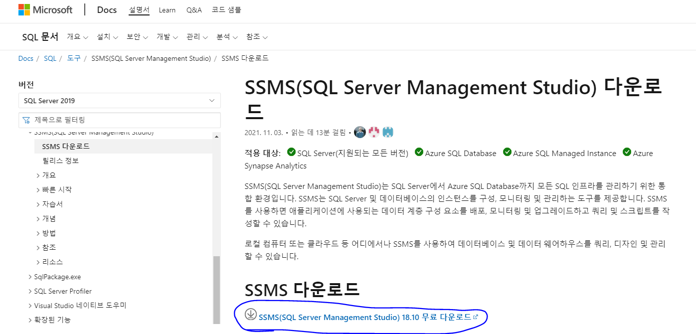 https://docs.microsoft.com/ko-kr/sql/ssms/download-sql-server-management-studio-ssms?view=sql-server-ver15