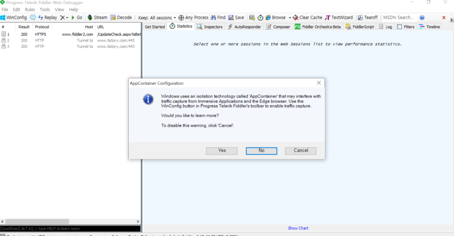 이것을 실행하면 아래화면과 같이 fiddler를 사용할 수 있습니다!